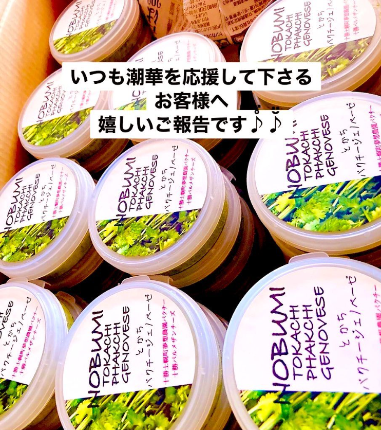 潮華の『とかちパクチージェノベーゼ』を使っていただけることになりました」